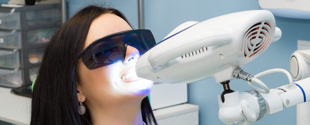 In-chair dentist teeth whitening is more effective than the home teeth whitening kit. It involves the application of gel on your teeth and using an LED light with a blue spectrum to cure the gel.